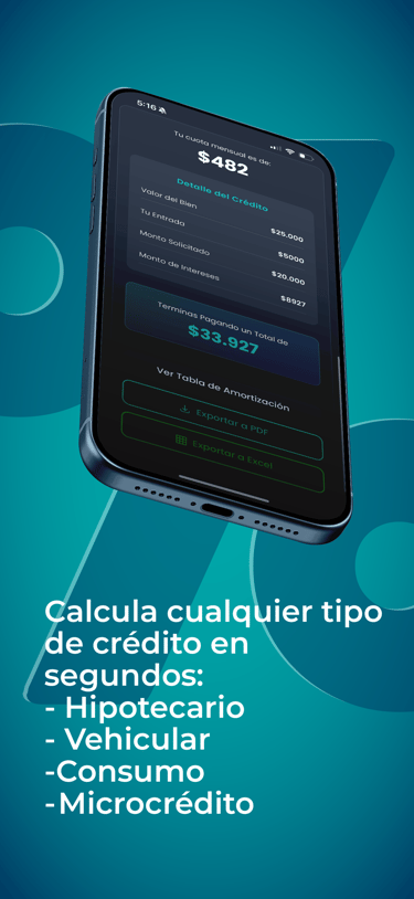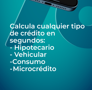 Te permite calcular cuotas, intereses y distintos escenarios de pago sin complicaciones, para que tomes decisiones financieras con mayor confianza.
